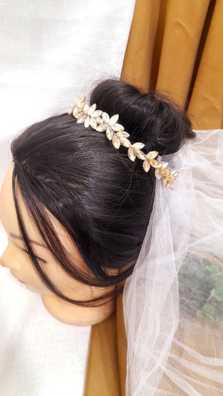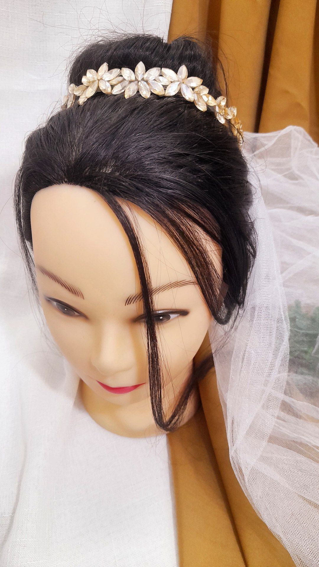 نیم تاج ظریف و زیبا تمام سنگ که از سنگهای اصل و چسب درجه یک تاجسازی تهیه شده و اصلن ریزش نگین نداره