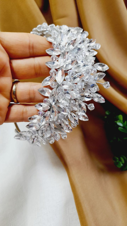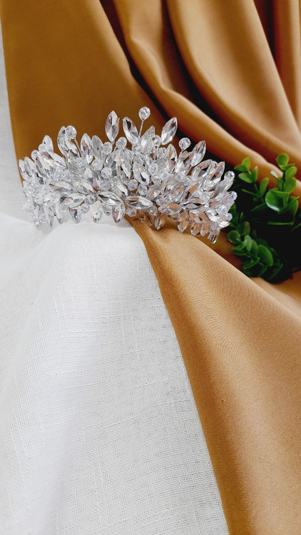 این تاج از تاج های پرنسسی و بسیار سبک و مناسب قیمت و از سنگ و کریستال اصل تهیه شده و سیم کار شده کاملا روکش داره و اصلن تغییر رنگ نمیده و از چسب درجه یک تاجسازی تهیه شده و اصلنریزش نگین نداره