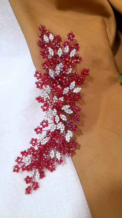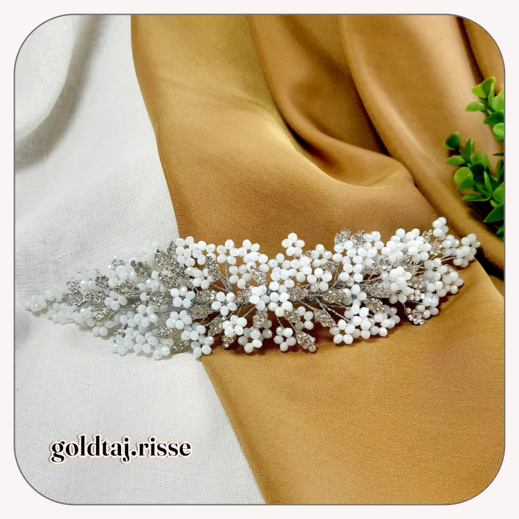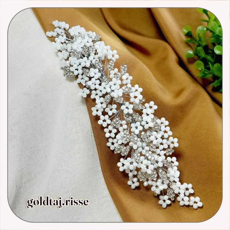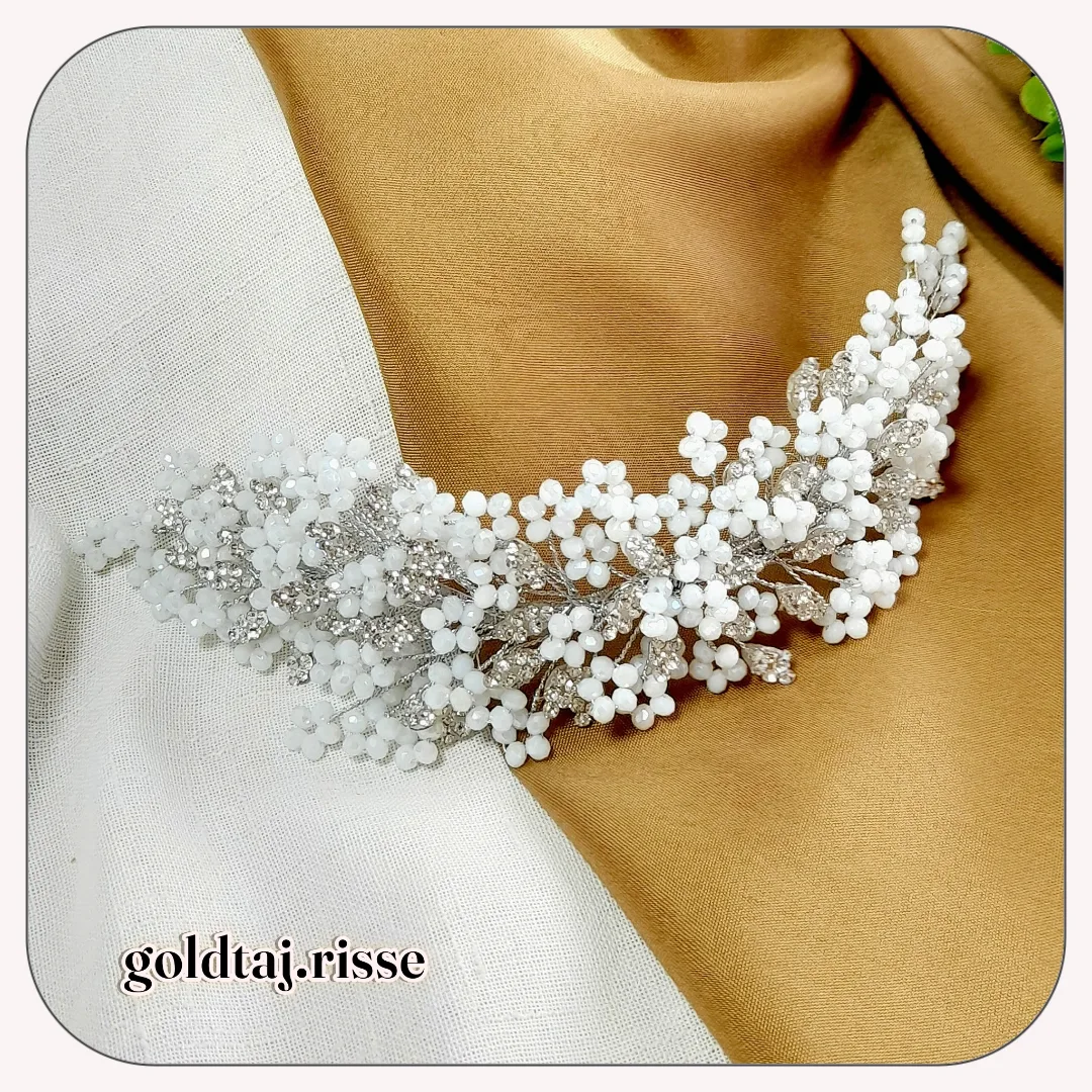 تهیه شده از بهتربن کیفیت متریال کریستال و نگین اتریشی اصل و سیم روکش دار که تغییر رنگ نمیده و چسب درجه یک تاجسازی
