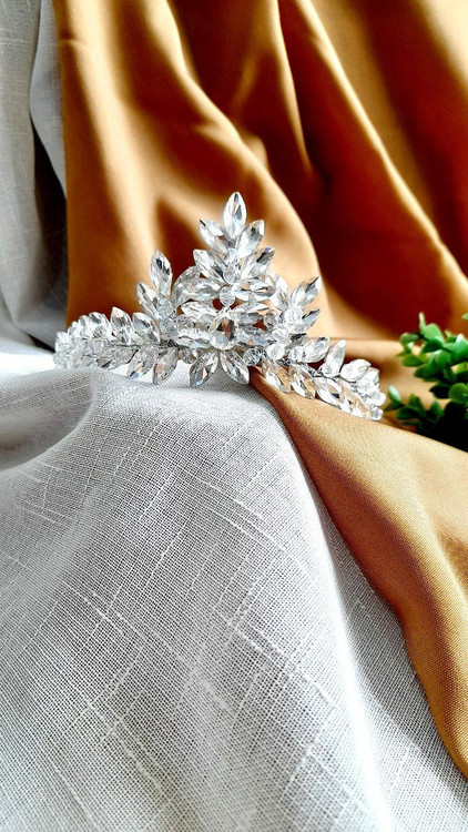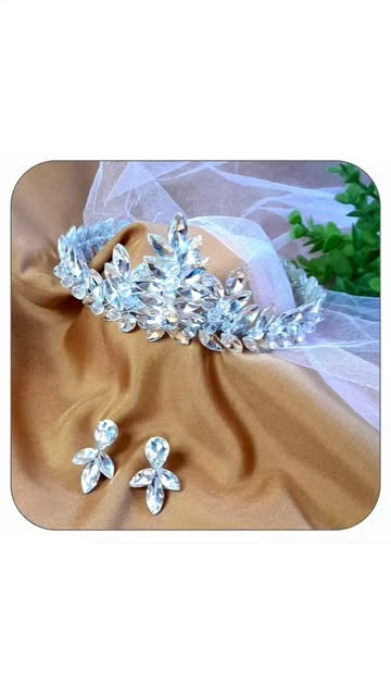 تاج اروپایی تمام سنگ و کریستال اصل همراه یه جفت گوشواره ست با تاج بعنوان اشانتیون
