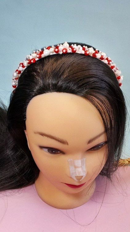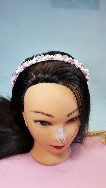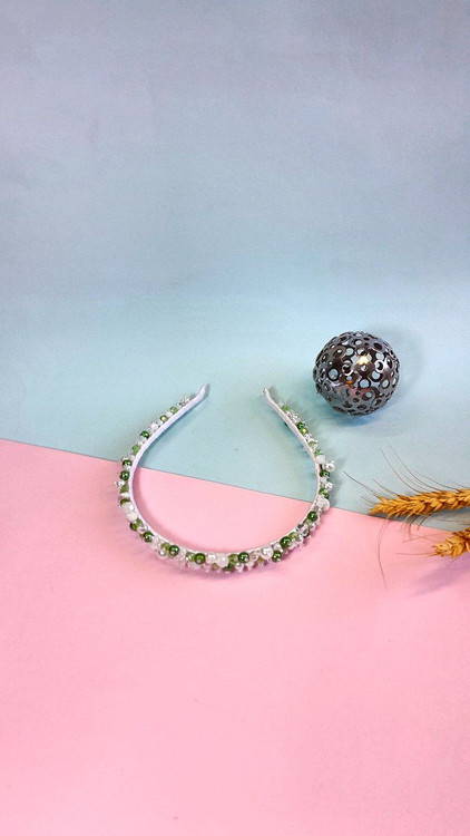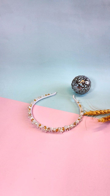 از مروارید و کریستال های اصل و نخ نامریی و منجوق تهیه شدن زیر کار ربان ساتن استفاده شده
