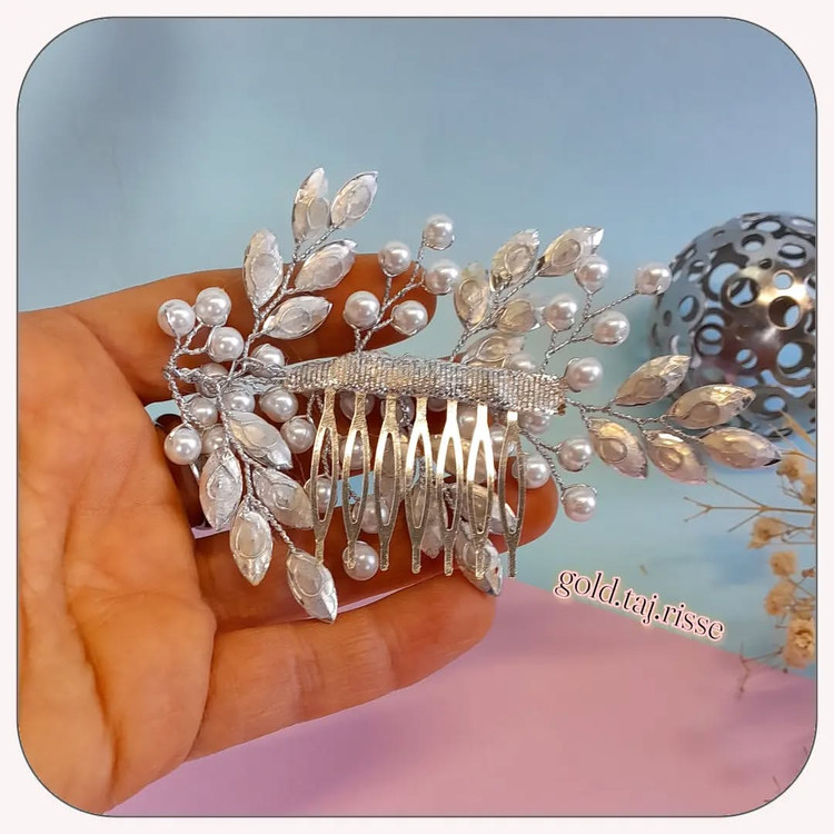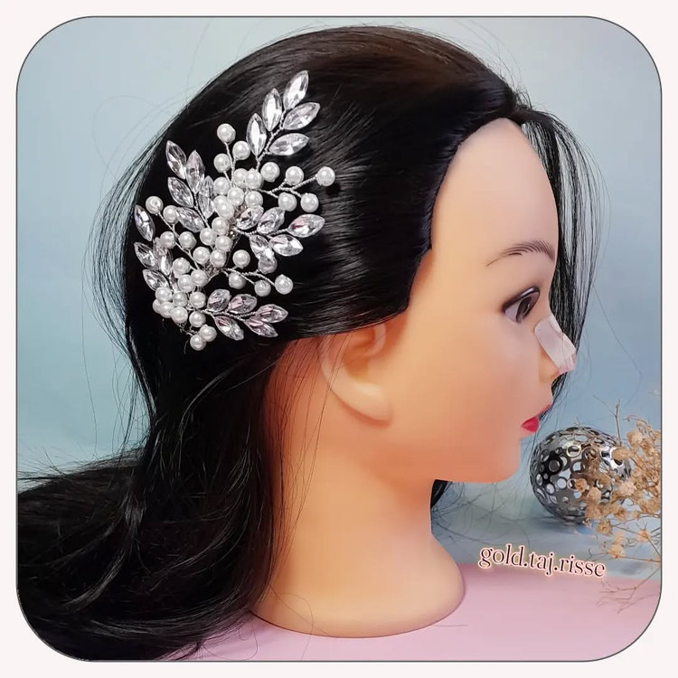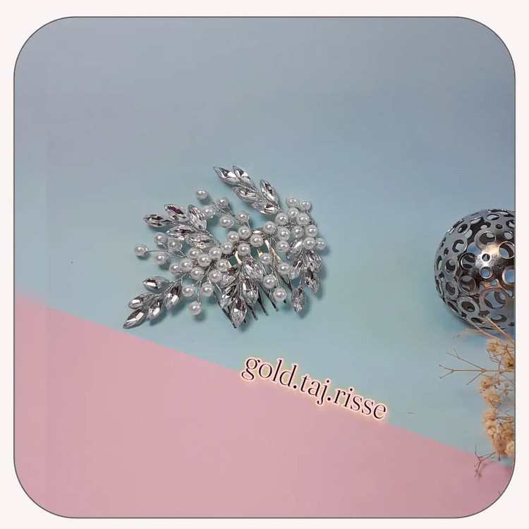 تهیه شده از بهترین کیفیت مروارید و سنگ رزین درجه یک و سیم روکش دار که اصلن تغییر رنگ نمیده و شونه شنیون درجه رنگ