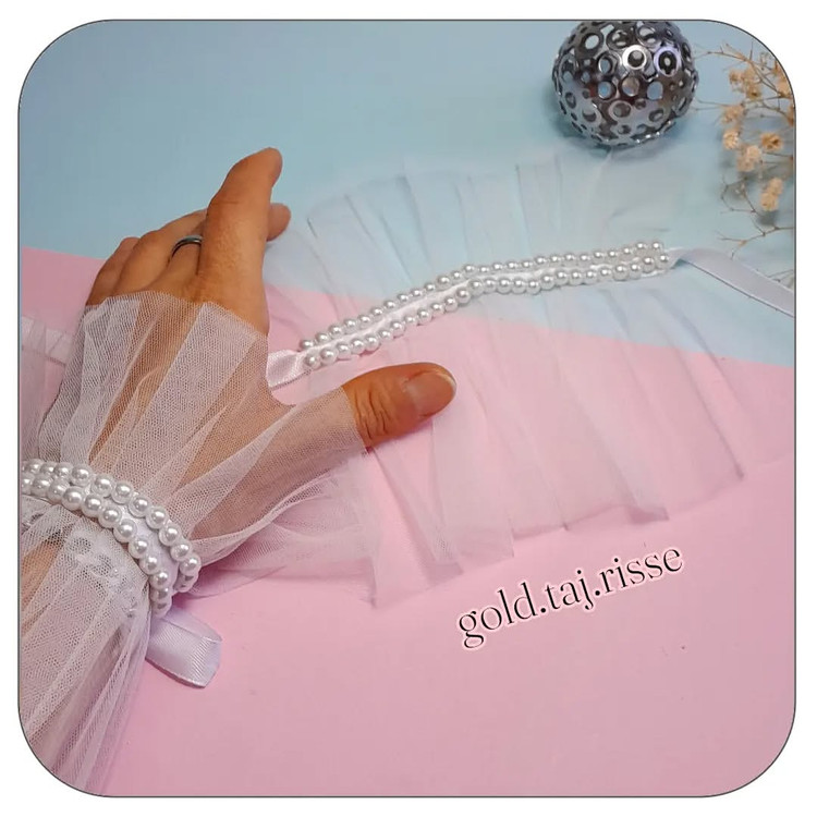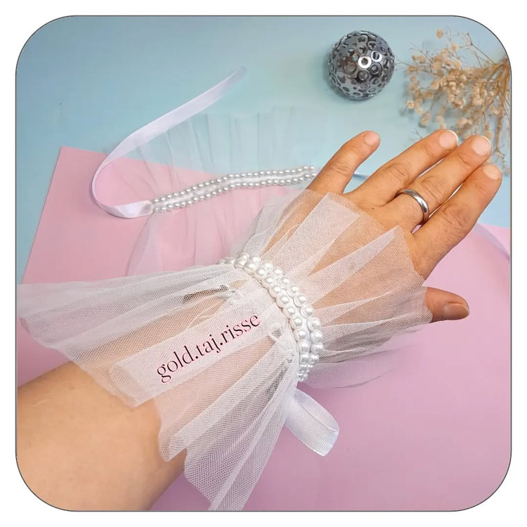 مچ بند جذاب مرواریدمون با نمایی عالی تهیه شده از تور فرانسه و مروارید اصل و ربان ساتن